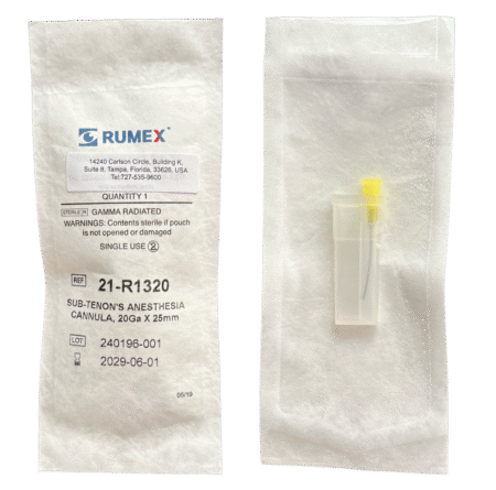 Aguja de anestesia subtenoniana 20 g x 25 mm Rumex