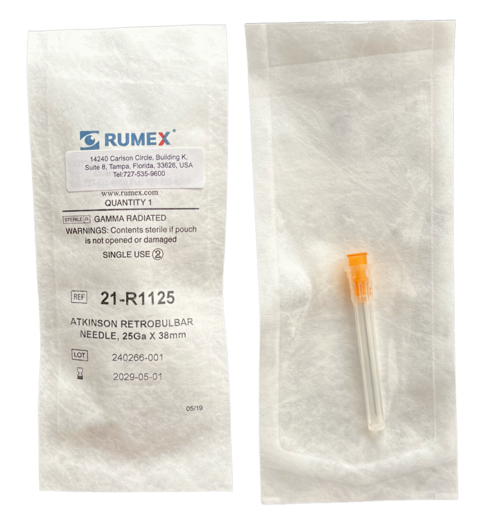Aguja retrobulbar Atkinson 25 G x 28 mm Rumex
