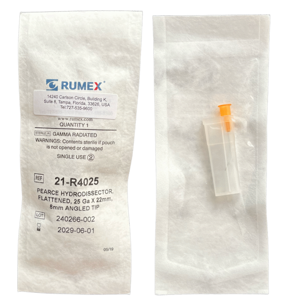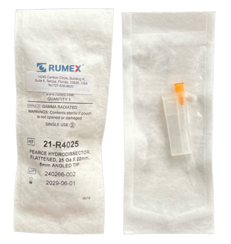 Cánula de hidrodisección 25 G x 22 mm Punta angular de 8 mm Rumex