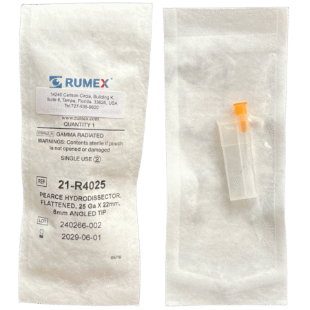 Cánula de hidrodisección 25 G x 22 mm Punta angular de 8 mm Rumex